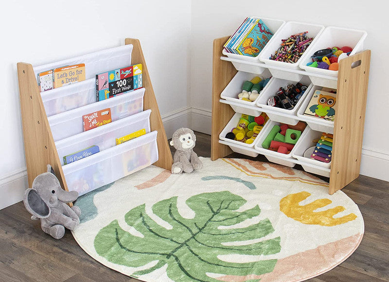 Children's Bookcase Storage Rack with 4 Tiers, Natural/White